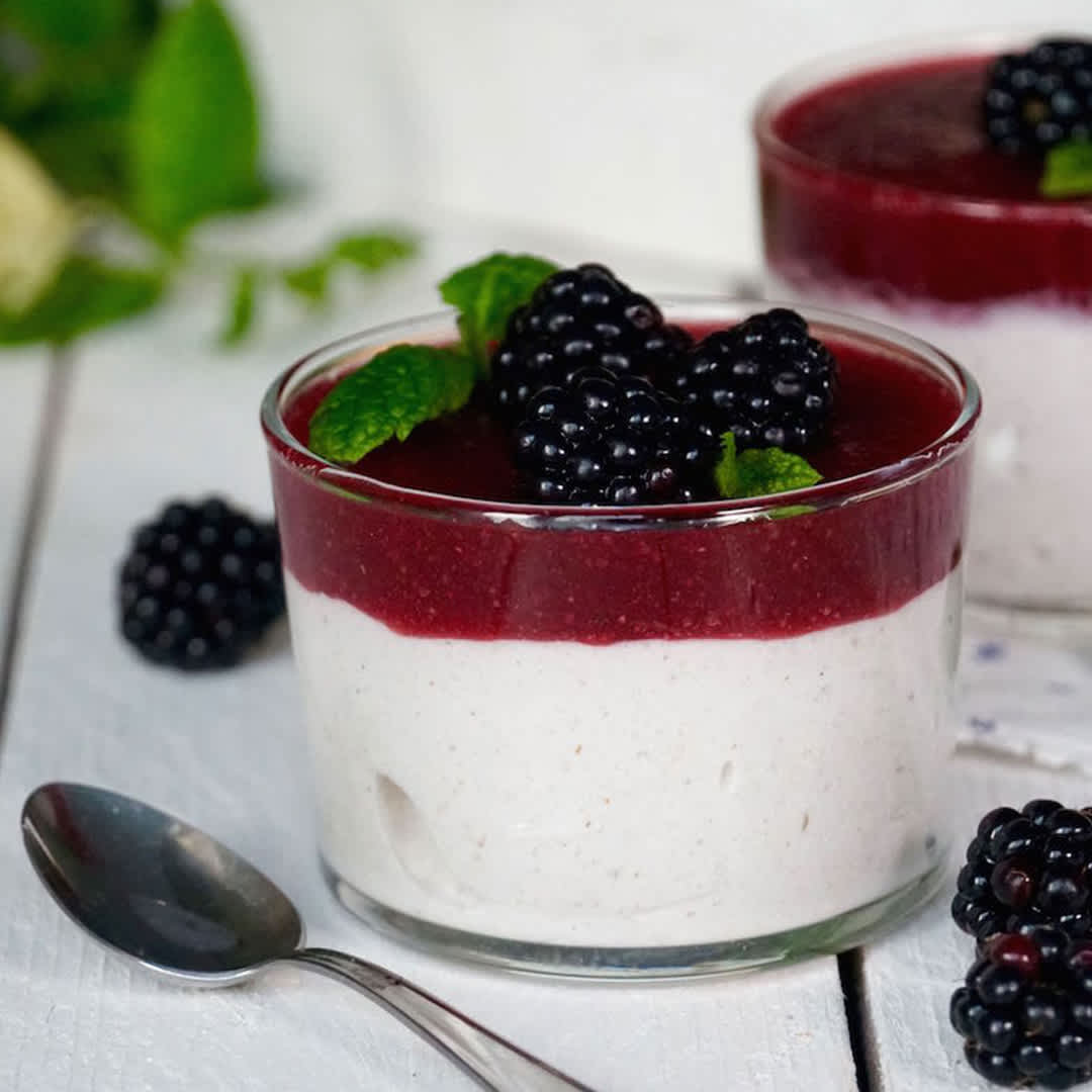 Sega kookose panna cotta ained blenderis ühtlaseks ja vala panna cotta klaasidesse.