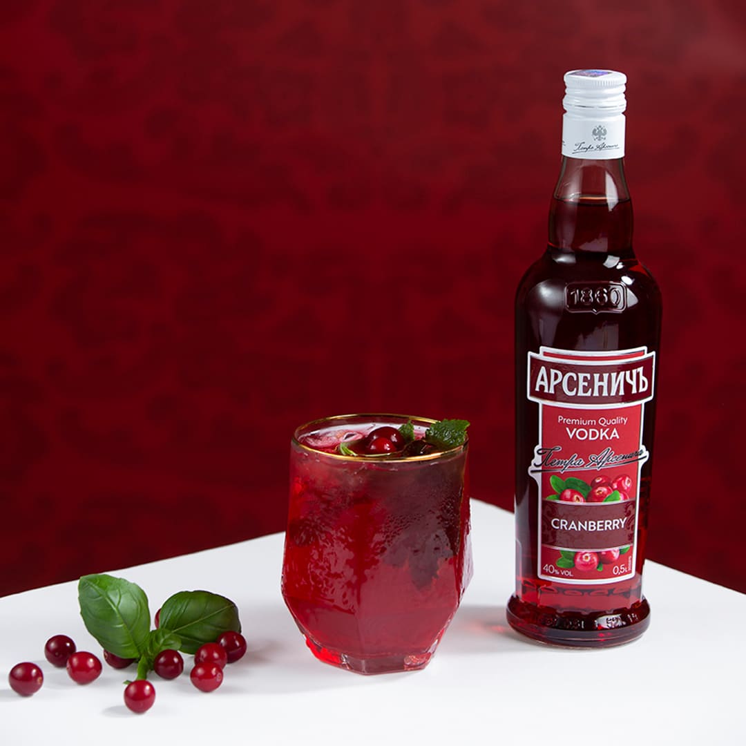 Viinakokteil Arsenitch Cranberry vodka, magus-hapuka jõhvikamahla ja vürtsika Ginger Ale toonikuga.